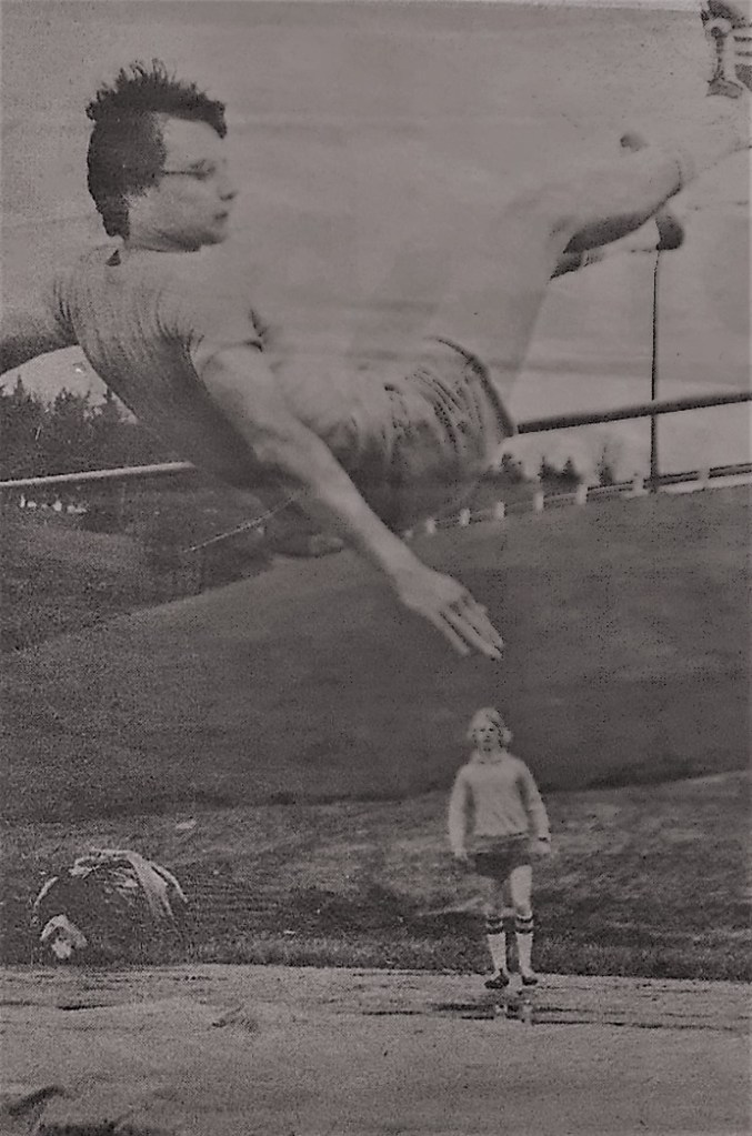 It wasn’t until I was in grade 12 that I would again participate in a track meet. The C.W.A.S.A.A. track meet was being held in Red Deer at Lindsay Thurber High School. The meet involved all the schools in Central West Alberta and included larger schools such as Lacombe, Ponoka, Rocky Mountain House, Stettler, and the two Red Deer Schools. All the athletes arrived on buses and had a coach and the luxury of track practices before the meet.