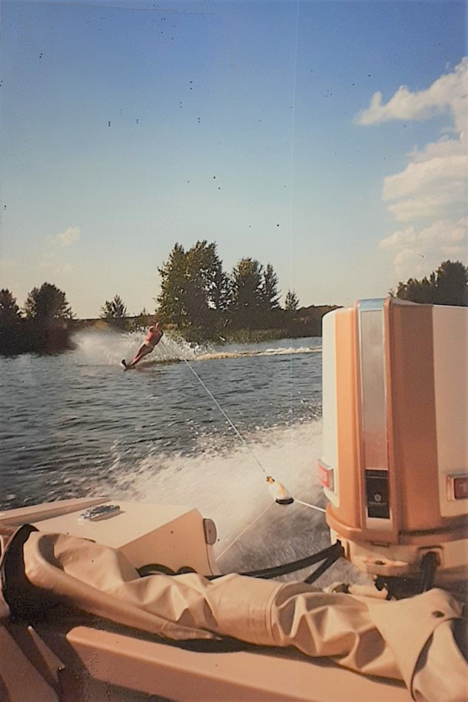 I also liked to do a lot of outdoor recreational activities. I much preferred being active outside rather than staying inside and watching television, reading, or playing games. I was lucky that I had Alix Lake in my backyard as my playground. I could go swimming whenever I wanted, often diving off the pier and swimming to the other side and back. I especially enjoyed doing this in the evening when the lake was perfectly calm. I also liked exploring the shoreline in our small motorboat or getting up early in the morning on a weekend to go fishing. If there was no snow on the lake in the winter, I enjoyed skating around the whole lake, practicing my stickhandling. Once in a while, I borrowed the school’s cross country skis and would go skiing on the lake. Alix Lake was also where I learned to water ski and later when Dad bought a motorboat, I would invite my friends over to go water skiing.