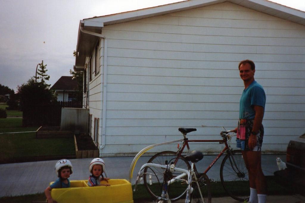 When I reached grade 10 I got my driver’s licence, and despite getting a new 10-speed bike, it wouldn’t be until I was married and living in Red Deer that I started doing a lot of biking again. Shortly after our first child was born, Michelle and I bought some mountain bikes and a bike trailer. It was not as fancy as the newer bike trailers that parents can buy today, but it allowed us to carry our kids to the parks on the Red Deer trail system. One of our favorite destinations was Rotary Park because it had the best playground for preschoolers, and we would get up on a weekend morning, pack a picnic lunch, and bike to the park with our kids in tow.