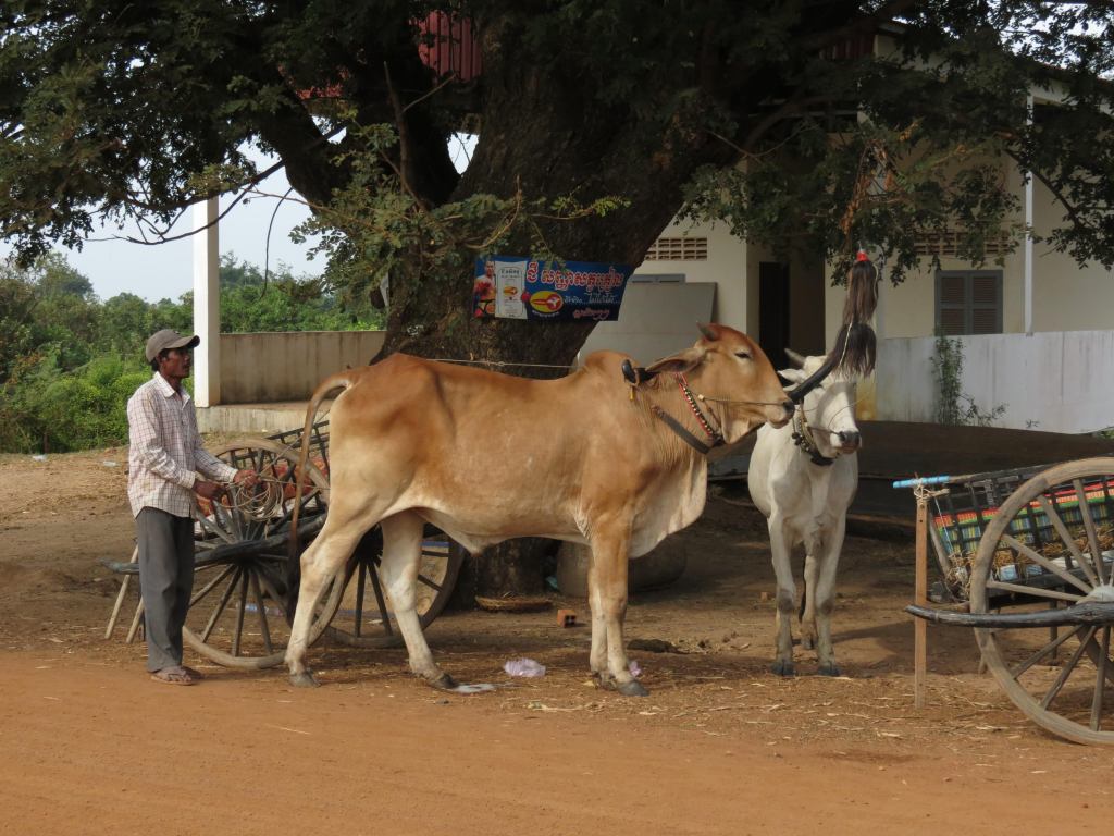 One of our stops was at Vinh Long, a small city in Vietnam. (I may have the name of the city wrong, as I got confused with all the different stops we made on the trip.) That day we were scheduled to visit a family-run brick factory, an outdoor pottery workshop, and a palm plantation. Bamboo, our tour guide, gave us two travel options that day: we could ride in a traditional Vietnamese cart being pulled by an ox, or we could ride a bike. We chose the bikes because there were a limited number of carts and some of the passengers were not in good enough condition to ride a bike the whole day, while others thought that being pulled by an ox in Vietnam was a romantic experience that they couldn’t miss out on.