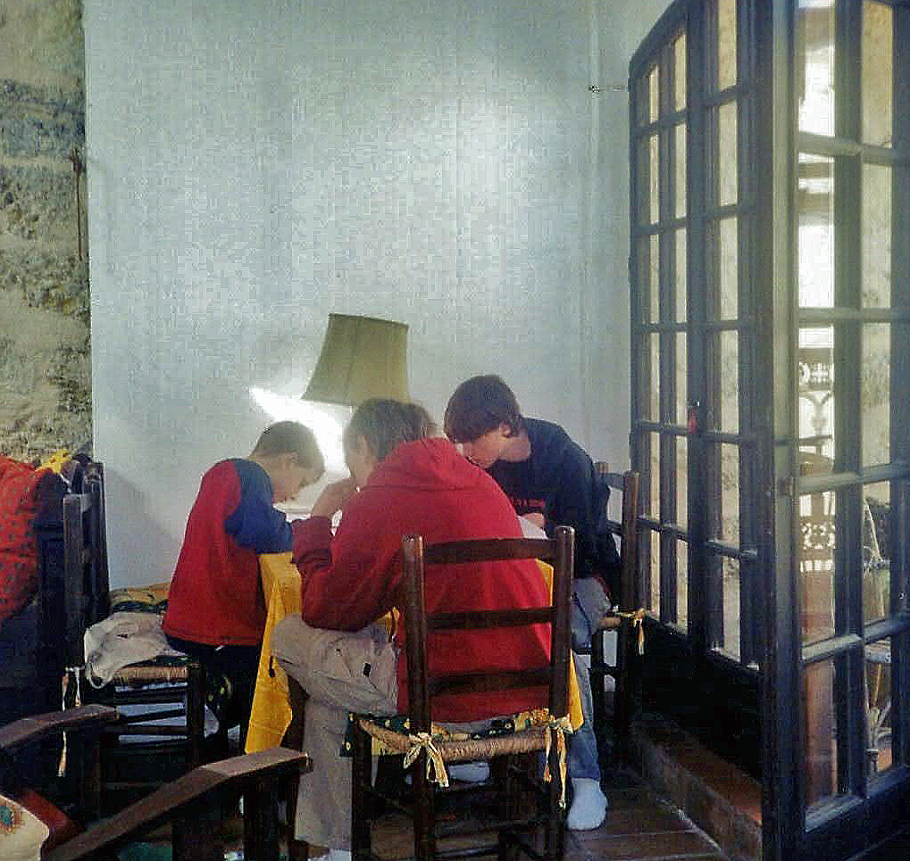 Brett, Keegan, and Joel were enthusiastic about traveling to Europe, especially since it meant missing an entire school semester. However, much to their displeasure, Michelle and I homeschooled them while traveling. The subjects we concentrated on were English and math. I helped them with math and Michelle helped with reading and writing. We also had them write in their daily journals.