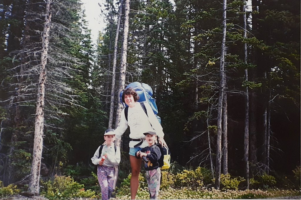 When we started dating we borrowed a friend’s two-man tent to go backpacking in Kananaskis Provincial Park. After we got married, we purchased a three-man tent, and by the time our third son was born, we owned a six-man tent. We never considered owning a trailer: camping to us meant living outside, sleeping on the ground with sleeping bags, and cooking meals on the picnic table. Our boys enjoyed our camping trips which included backpacking trips in the Rocky Mountains.