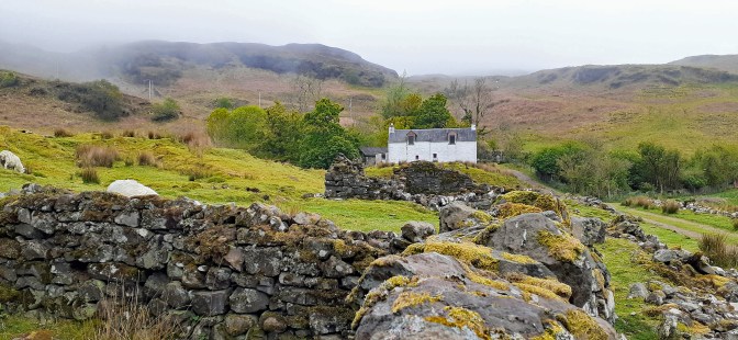 The Isle of Lismore is a peaceful island that is sparsely populated, with very little traffic, making it ideal for cycling. As Michelle and I cycled on a narrow road that wound its way towards the northern tip of the island, we enjoyed the stunning landscape. At every turn, I couldn’t resist stopping to take pictures, making Michelle impatient. Alongside the road were century-old farmhouses surrounded by lush green pastures filled with grazing sheep, all separated by ancient stone fences. We also saw the ruins of an ancient fortress that once protected Scotland against foreign invaders. When we reached the island’s highest point, we had a breathtaking view of the Scottish countryside against the choppy waters of Loch Linnhe.