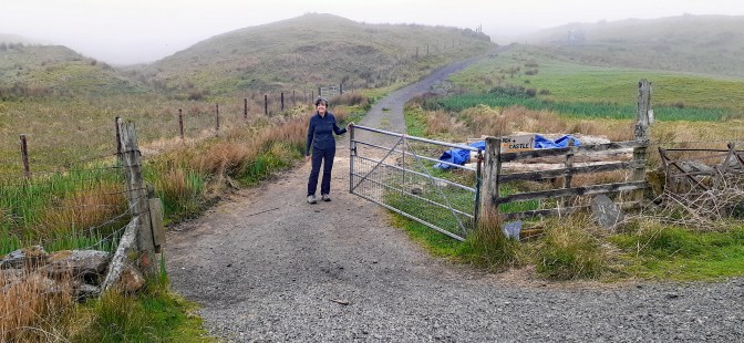 We had low expectations of the hike because of the weather, but the scenery surpassed our expectations. The trail wound its way through the rugged hills, adorned with vibrant yellow Gorse shrubs. As we continued along the trail, the rolling fog clung to the landscape, teasing us with glimpses of the Scottish coastline. We also encountered adorable lambs who curiously observed us and greeted us with their baas. Like Lismore, there were quaint farmhouses and ancient fences built with stones; it felt like travelling back in time because other than a single power line, nothing had changed in centuries. By now Michelle had succumbed to my constant picture-taking, and no longer objected when I asked her to pose with a scenic view in the background.