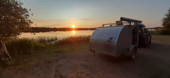 Today we had a long drive ahead of us to Lucien Lake, which, according to Google Maps, should have taken us six and a half hours. But Google Maps didn’t know that I have an irrational fear of fishtailing when driving on gravel roads towing a trailer, and it guided us on a country-trek to Lucien Lake, making the drive take longer than expected. Thankfully, we made it to Lucien Lake before the registration booth closed and found our spot along the lake. Tonight I listened to the Oilers win the first game against the Florida Panthers! Winning the game made up for today’s stressful drive.