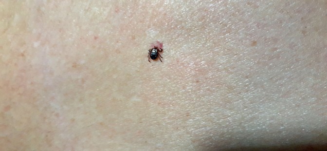 Interestingly, when I was getting ready for bed, Michelle further inspected a mark she had seen on my back the day before and, with her reading glasses on, said it looked like it had legs. She grabbed her camera and took a picture. I am horrified to see that it was a tick! I found the tweezers from the first-aid kit and ordered Michelle to remove it. Summoning every bit of courage, she removed the tick without leaving the pincers behind. I have the tick stored in a plastic sandwich bag and will monitor for symptoms of Lyme disease for the rest of the trip.