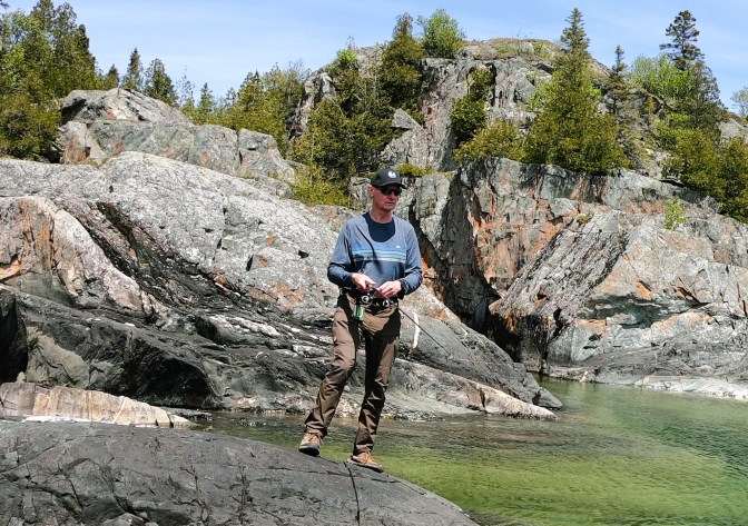 Michelle and I planned a week-long trip, with stops at different campgrounds, to reach Pukaskwa National Park. I was especially excited about spending two nights along the way in Quetico Provincial Park, where we’d get to finally use our new inflatable kayak. My friend Dave loves Quetico; he says it’s his favourite place to canoe, and has invited me on trips, which unfortunately I have had to decline. He insisted I bring my fishing rod, telling me I can easily catch fish right from the shore of any lake in Quetico.